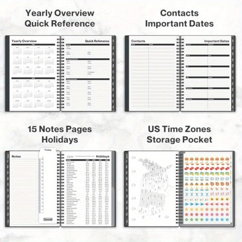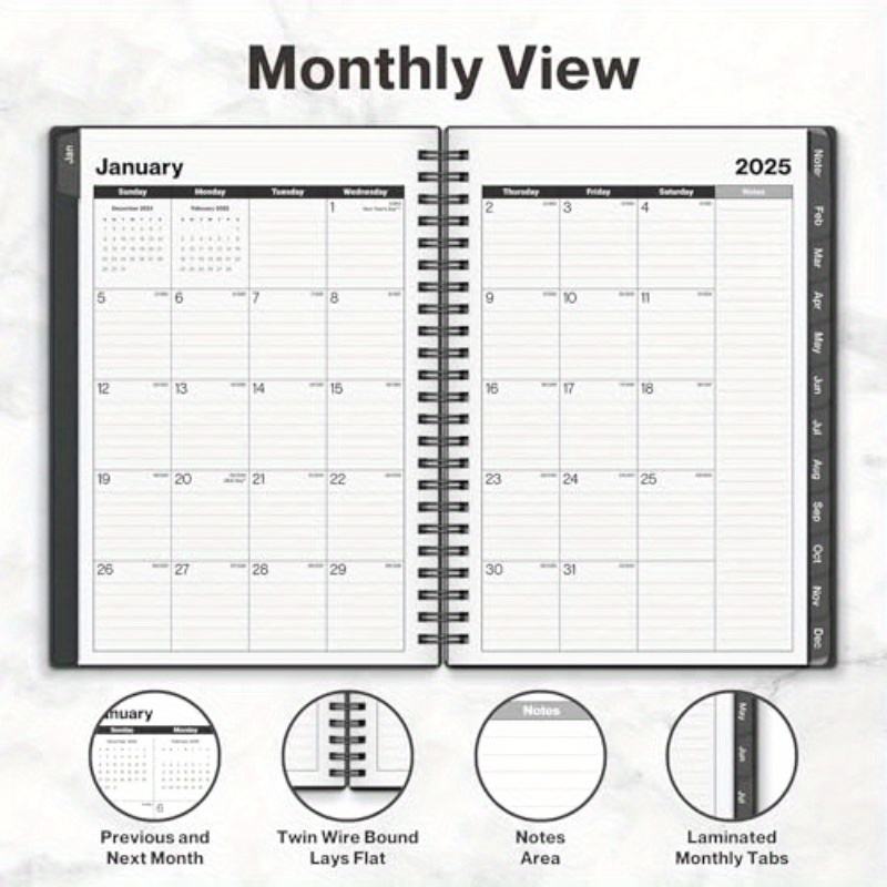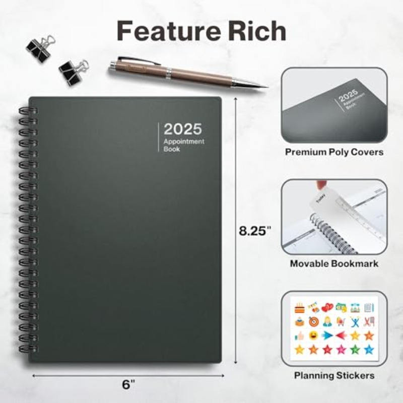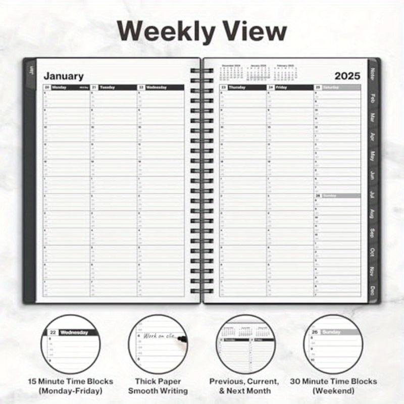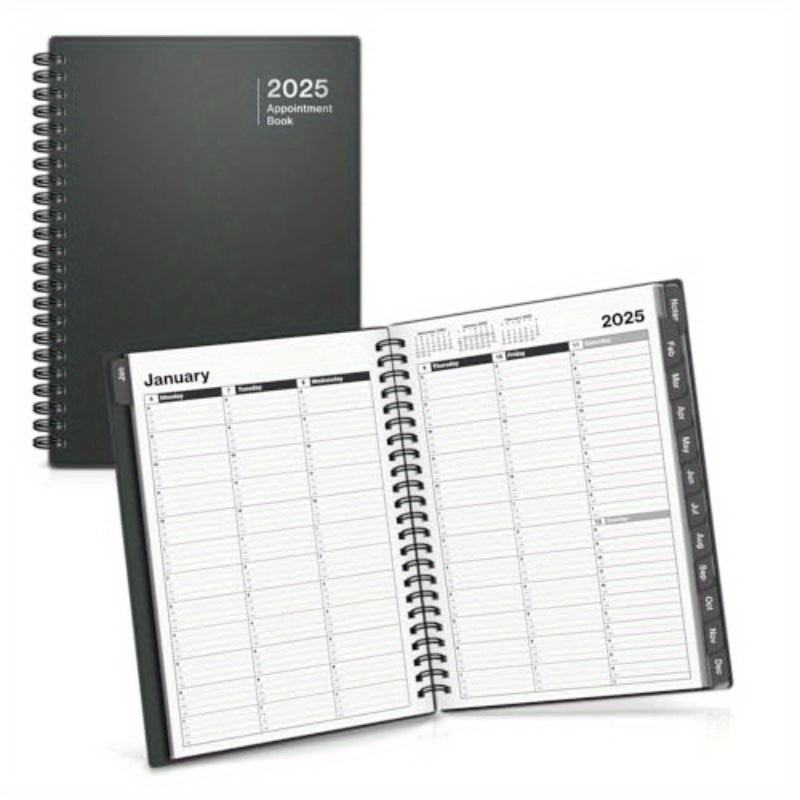 Cahier de rendez-vous à spirale Jan-Dec 2025 Trimestre Horaire Agenda quotidien avec vue mensuelle et mensuelle