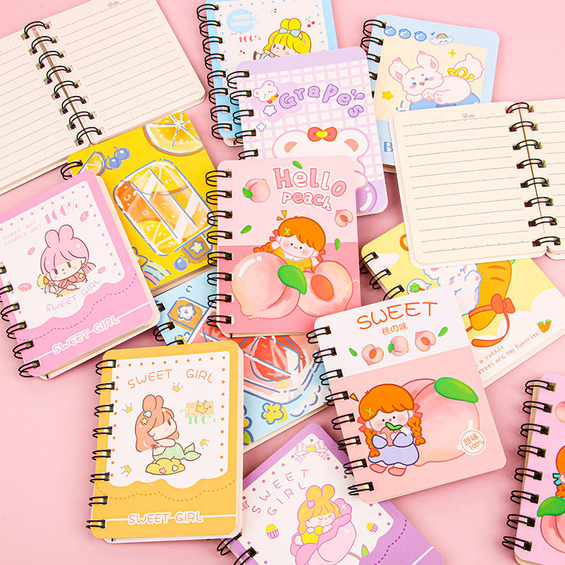 Carnet à spirale Mini Portable au design de dessin animé pour étudiants, papeterie cadeau pour filles, couverture en papier format A6