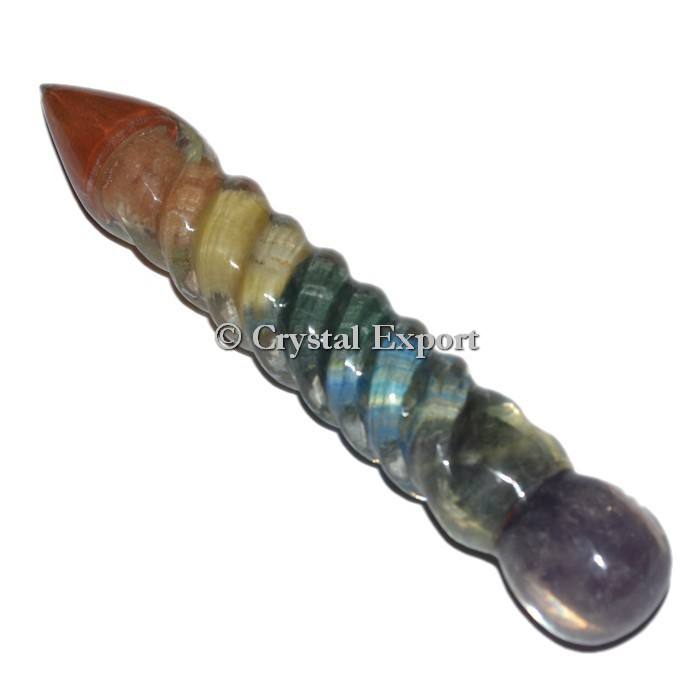 Baguettes de guérison Spiral Orgonite Chakra Baguettes de pierres précieuses en agate sculptées à la main avec technique sculptée de style amour gravé