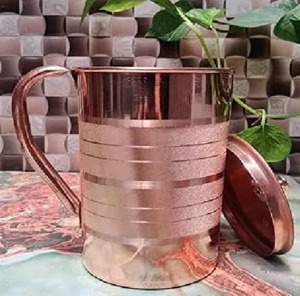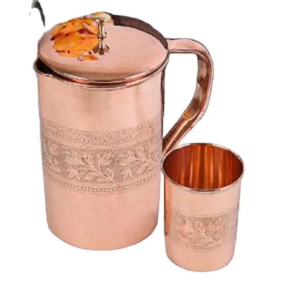 Pichet en cuivre côtelé en spirale avec poignée ornée, finition laiton poli, fait main, rustique, écologique, vaisselle décorative