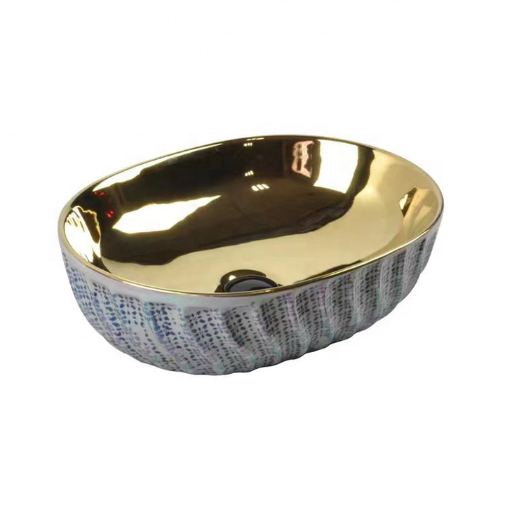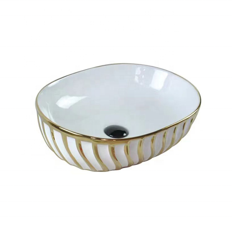 Lavabo de comptoir de haute qualité en forme de spirale Lavabo Art or blanc Lavabo de salle de bain en céramique au design en forme de Lotus