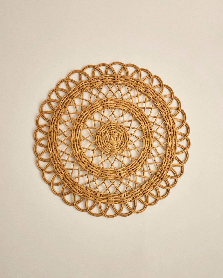 Set de table rond en rotin tressé en spirale, fait main, artistique, naturel, écologique, décoratif, vente en gros, OEM, ODM