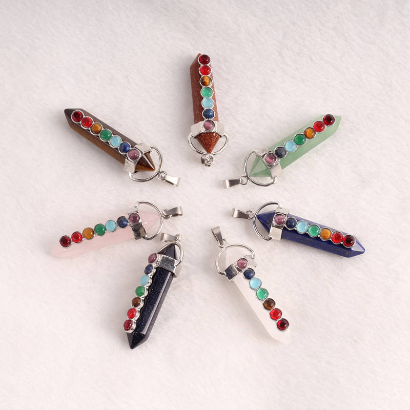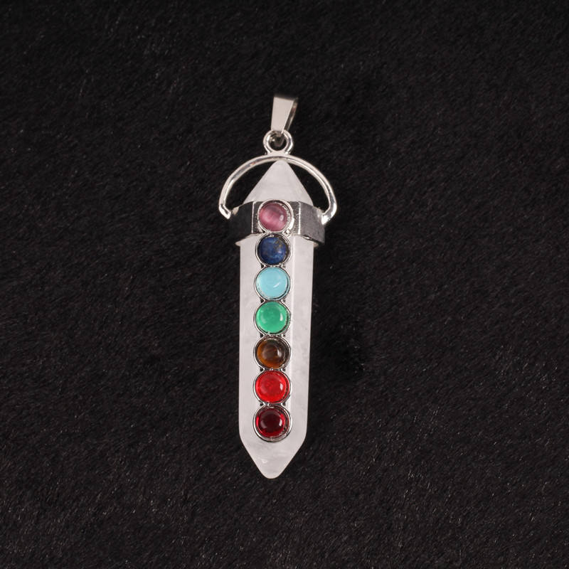 Pendentif en cristal à double pointe pour collier, accessoire spirituel, cristal, 7, sept chakras, pendule