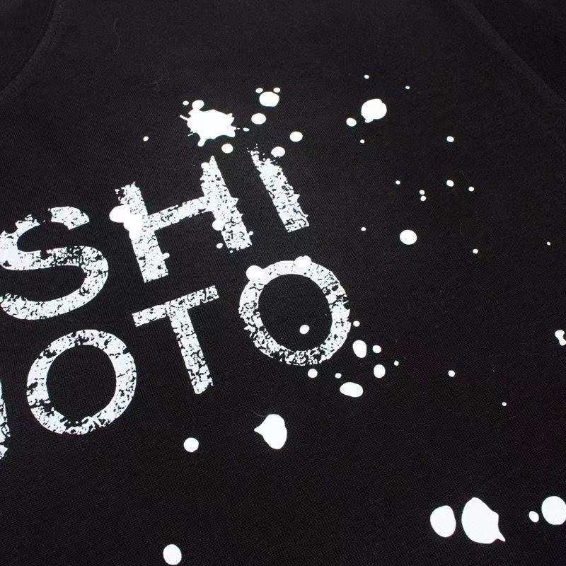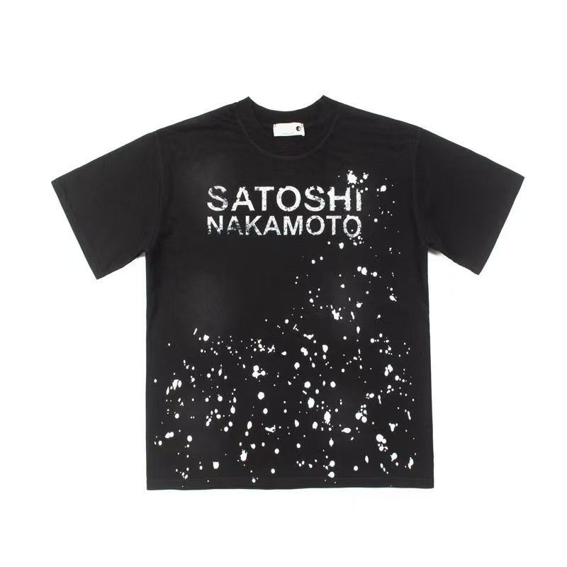T-shirt à manches courtes imprimé lettres rétro classiques Splash Ink SATOSHI NAKAMOTO pour hommes et femmes