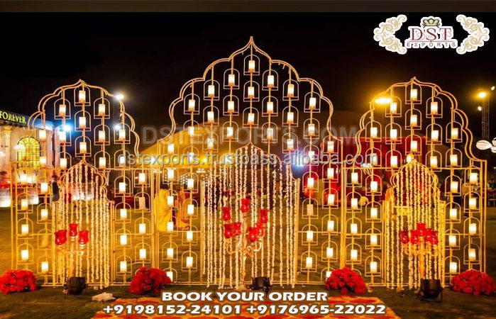 Splendide toile de fond de murs de bougies modernes pour les décorations de mariage de nuit avec support