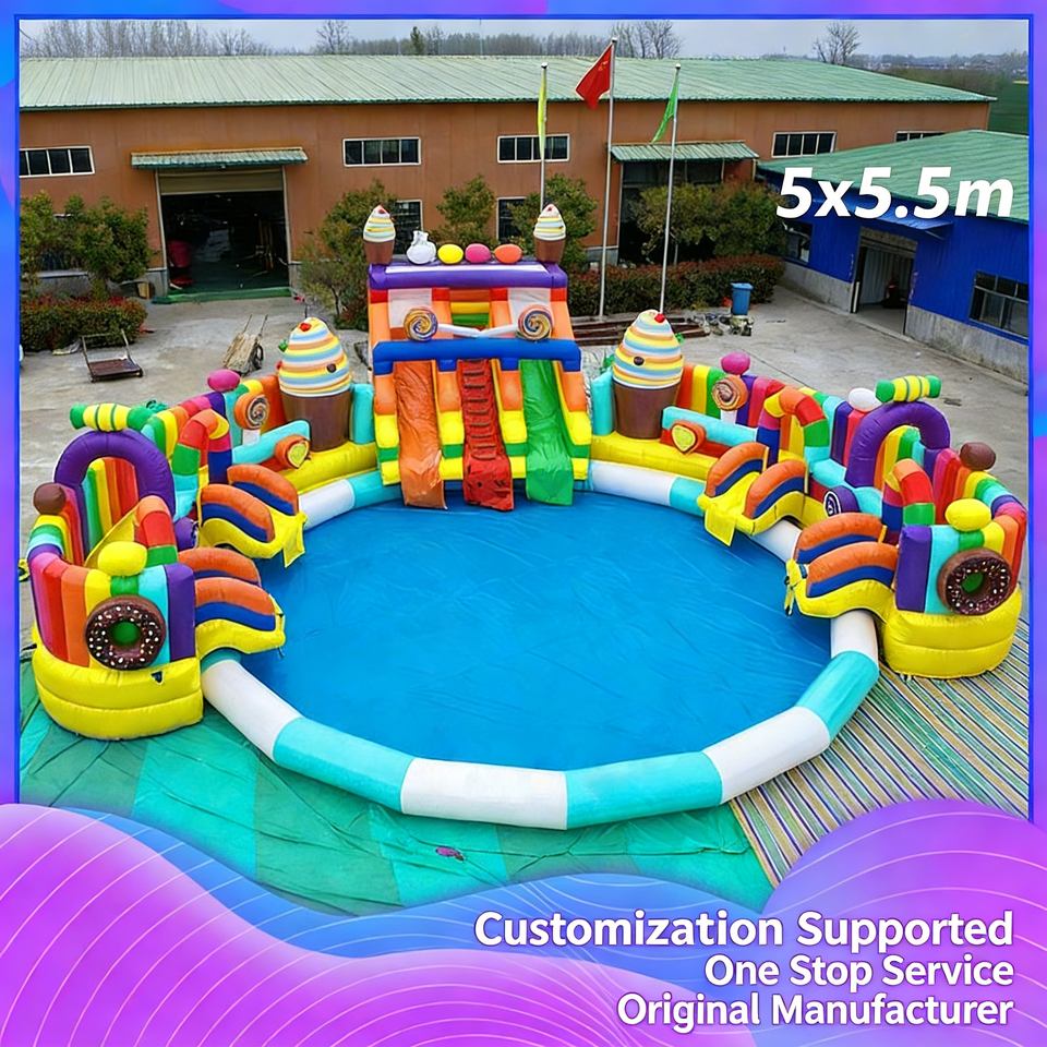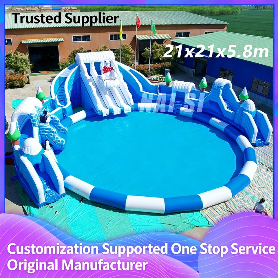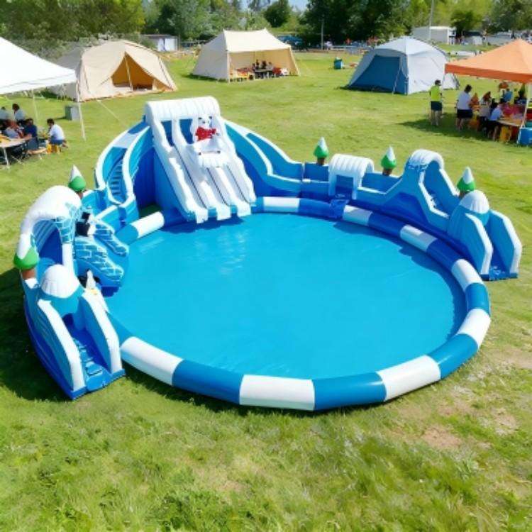Splendide parc aquatique gonflable d'extérieur, toboggan aquatique gonflable géant commercial pour enfants, équipement de divertissement aquatique