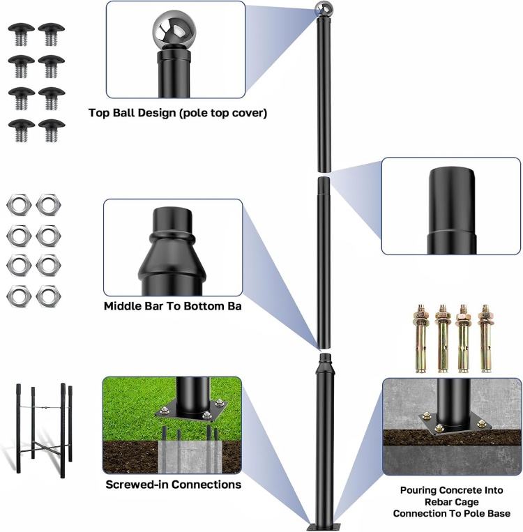 Couleur Pôle:Blanc, bleu, Silivery, noir et ainsi de suite