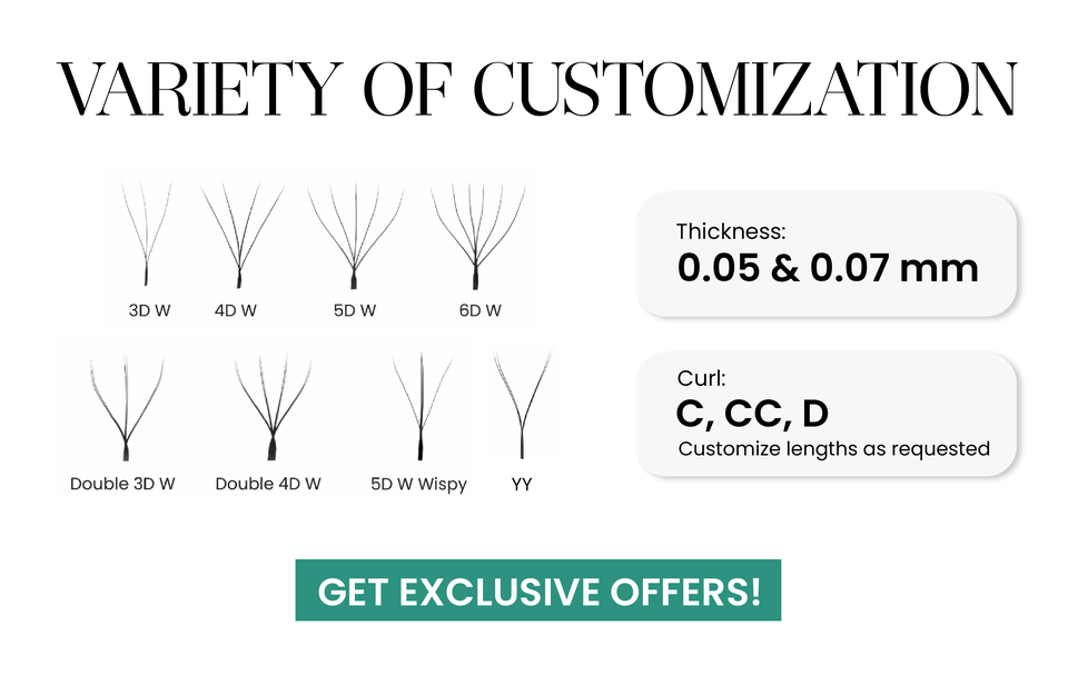 Cils YY à pointe fendue, éventails de cils pré-faits C CC D DD, noir profond, YY en gros, plateaux de cils en cachemire, longueur mixte