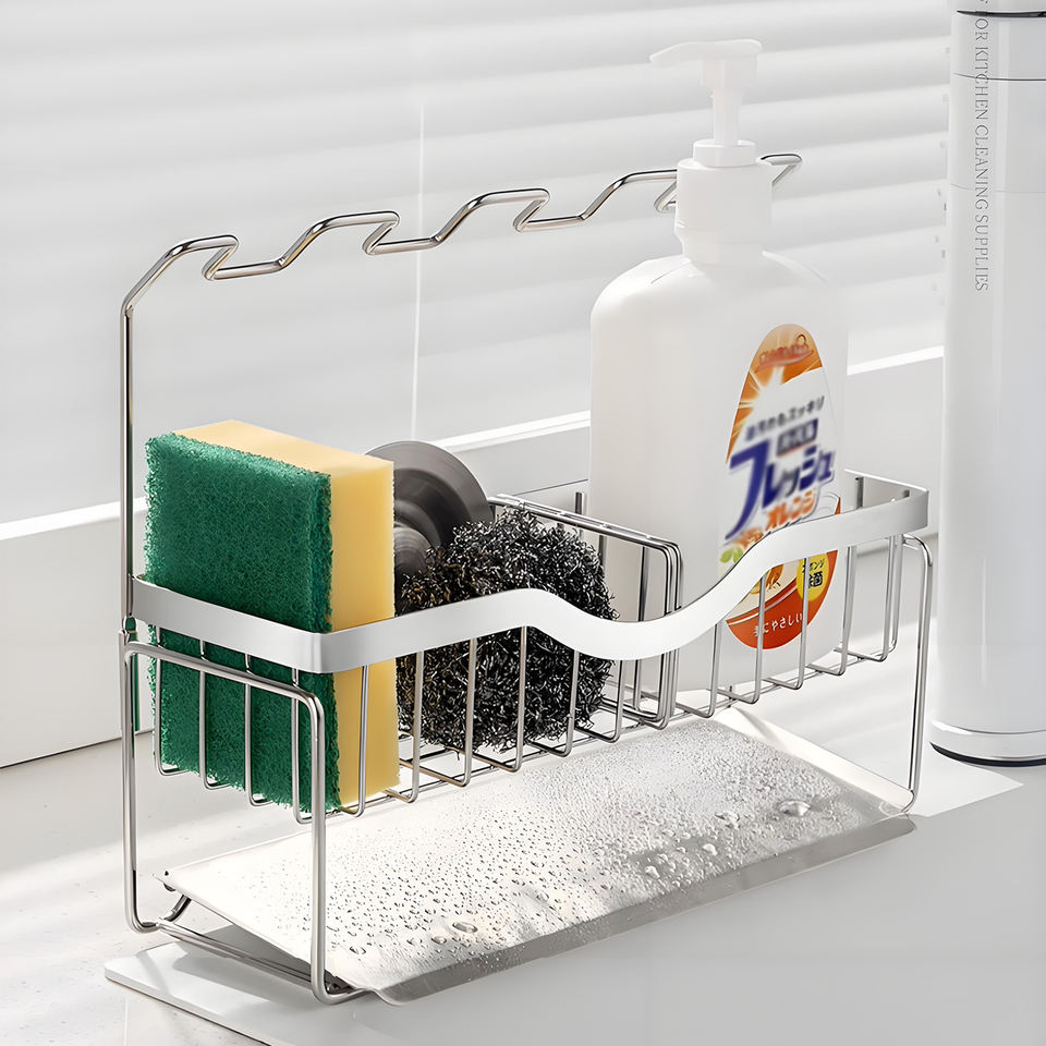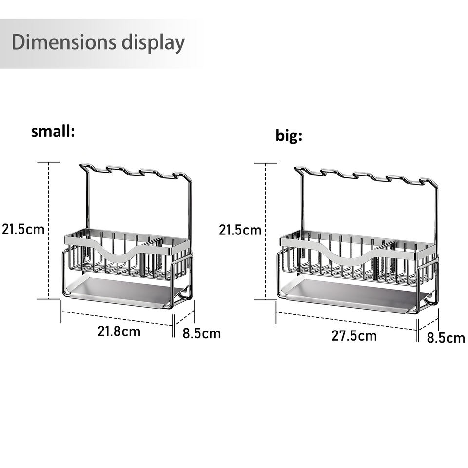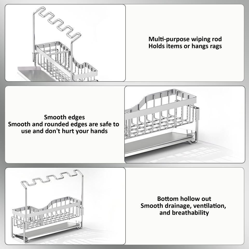 Organisateur de caddie d'évier de cuisine avec porte-éponge, organisateur de cuisine en acier inoxydable avec plateau de vidange automatique, support d'évier pour la cuisine