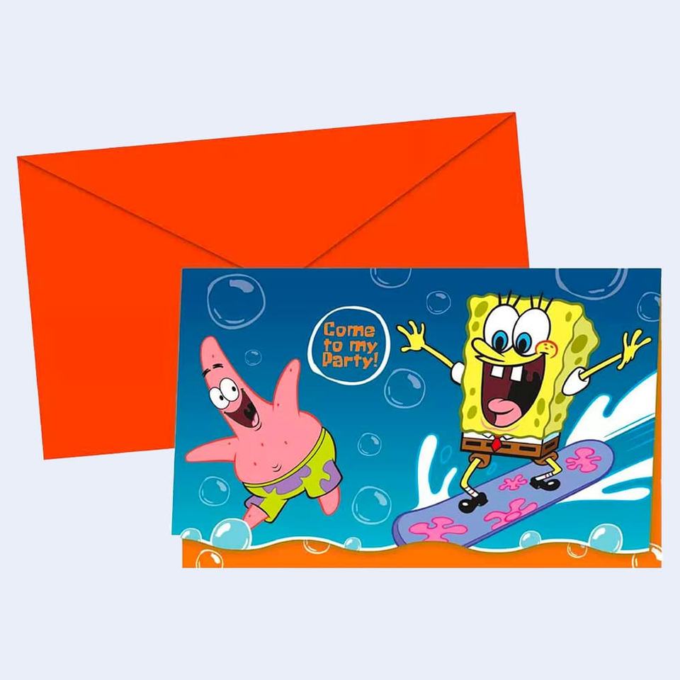 Invitations de fête Bob l'éponge, 6 pièces, 2 par sac, cartes de vœux