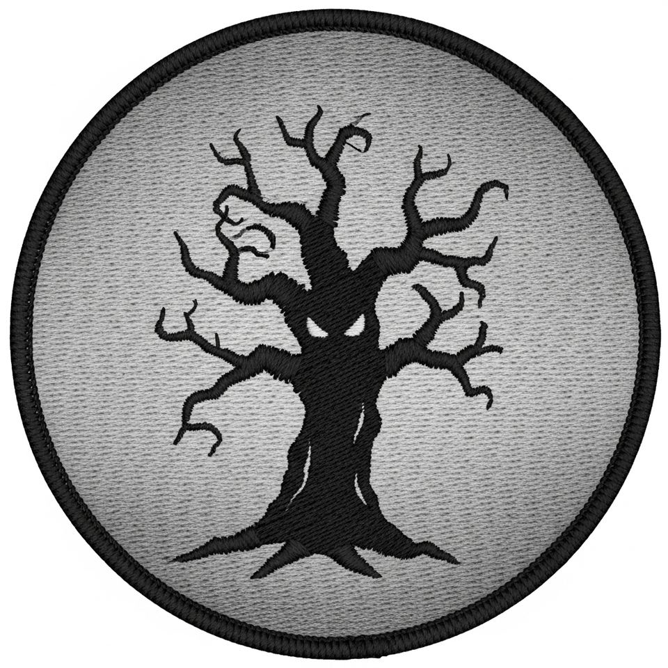 Patch brodé thermocollant rond sur le thème de l'arbre mort effrayant et de la forêt halloweénienne fantôme, pour vêtements, vestes, chapeaux et appliques DIY