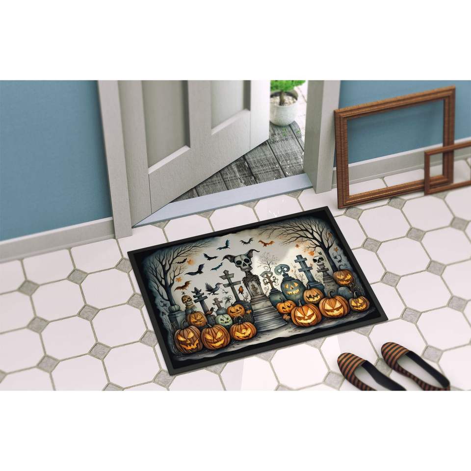 Spooky Halloween Pet Cemetery Paillasson Antidérapant Lavable Low Pile Intérieur Extérieur Tapis 24H X 36W Tapis de Porte Avant pour Entrée
