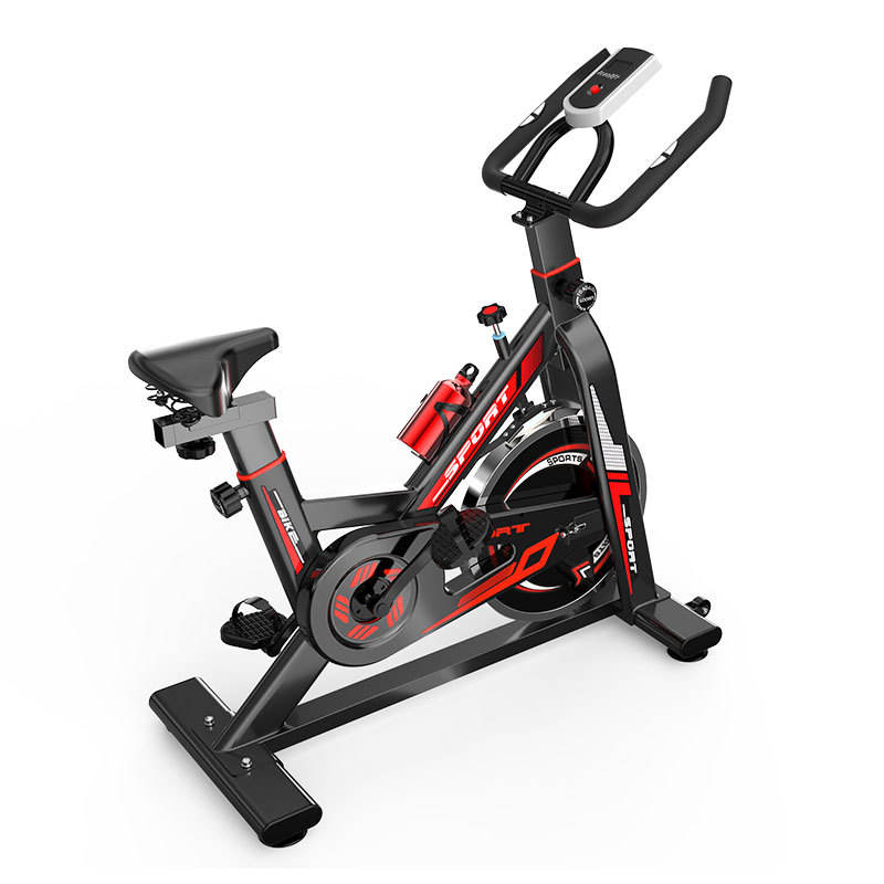 Vélo d'exercice d'intérieur vertical avec résistance réglable, équipement de fitness à domicile, noir et rouge JS2002