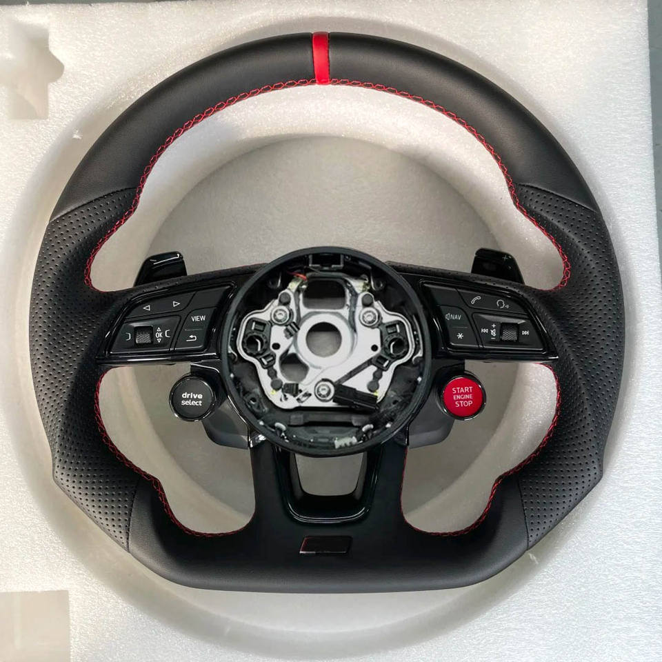 Volant de course Sport RS entièrement en cuir avec bouton de démarrage pour Audi TTS TTRs RS3 RS6 RS4 RS5 RS7 A3 A4 A5 A6 A7 A8 A1 Q3 Q5 Q7 R8