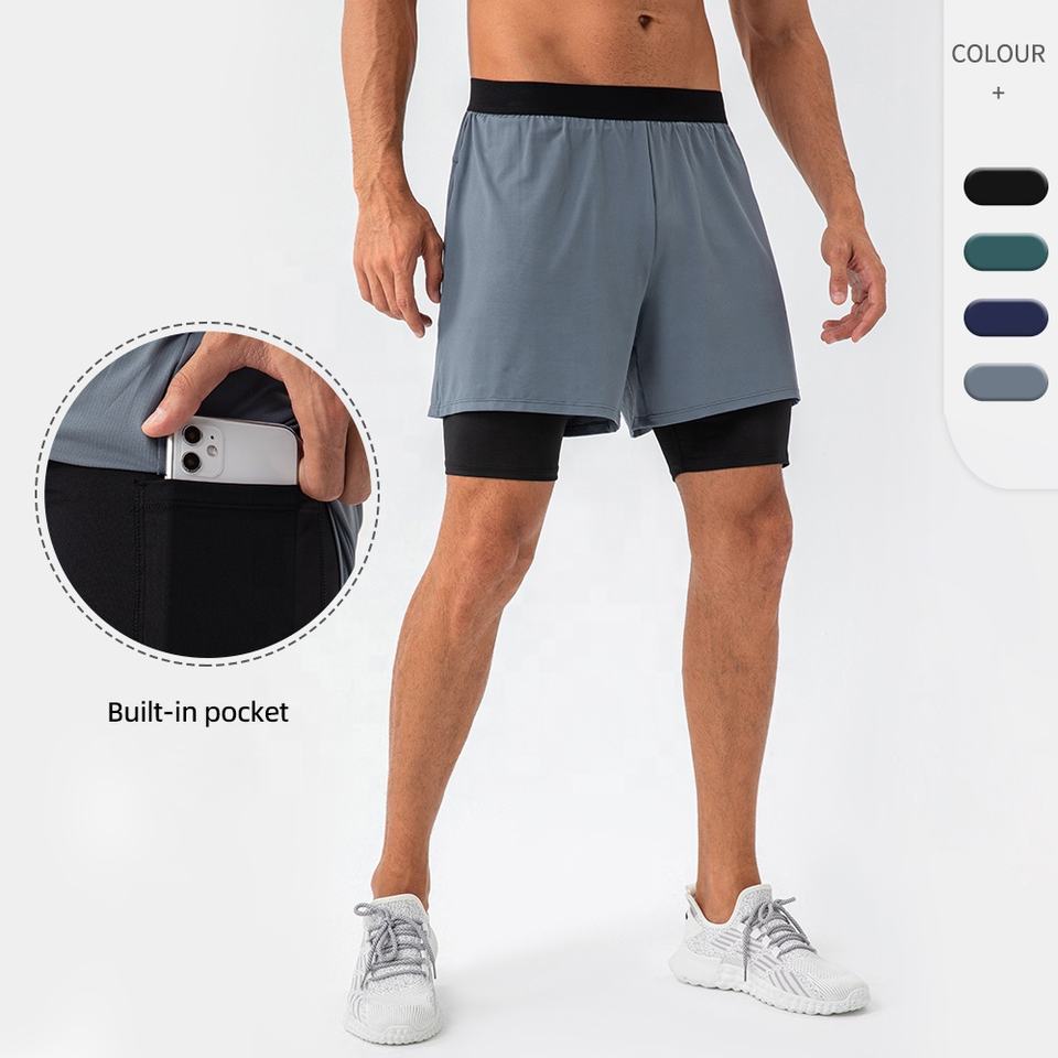 Sport Shorts Custom Logo Athletic Jogger Running Men 2 in 1 Double-deck Fitness Workout GYM Shorts DDP Shipping