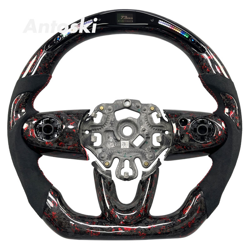 Volant de voiture en fibre de carbone forgée rouge personnalisé avec LED intelligentes, style sportif pour Mini F54 F55 F56 F57 F60 Cooper S Clubman ONE