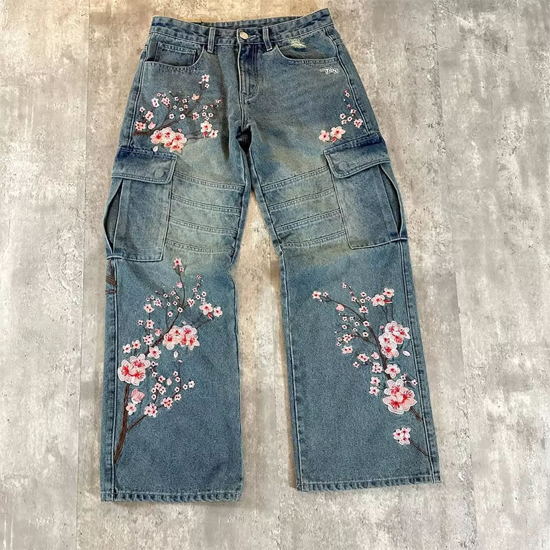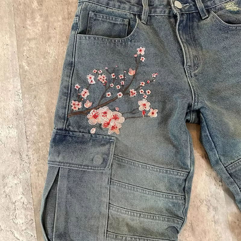 Jeans en denim ample à jambe droite, délavé et brodé sur mesure, de la marque Sportish Impex, pour hommes