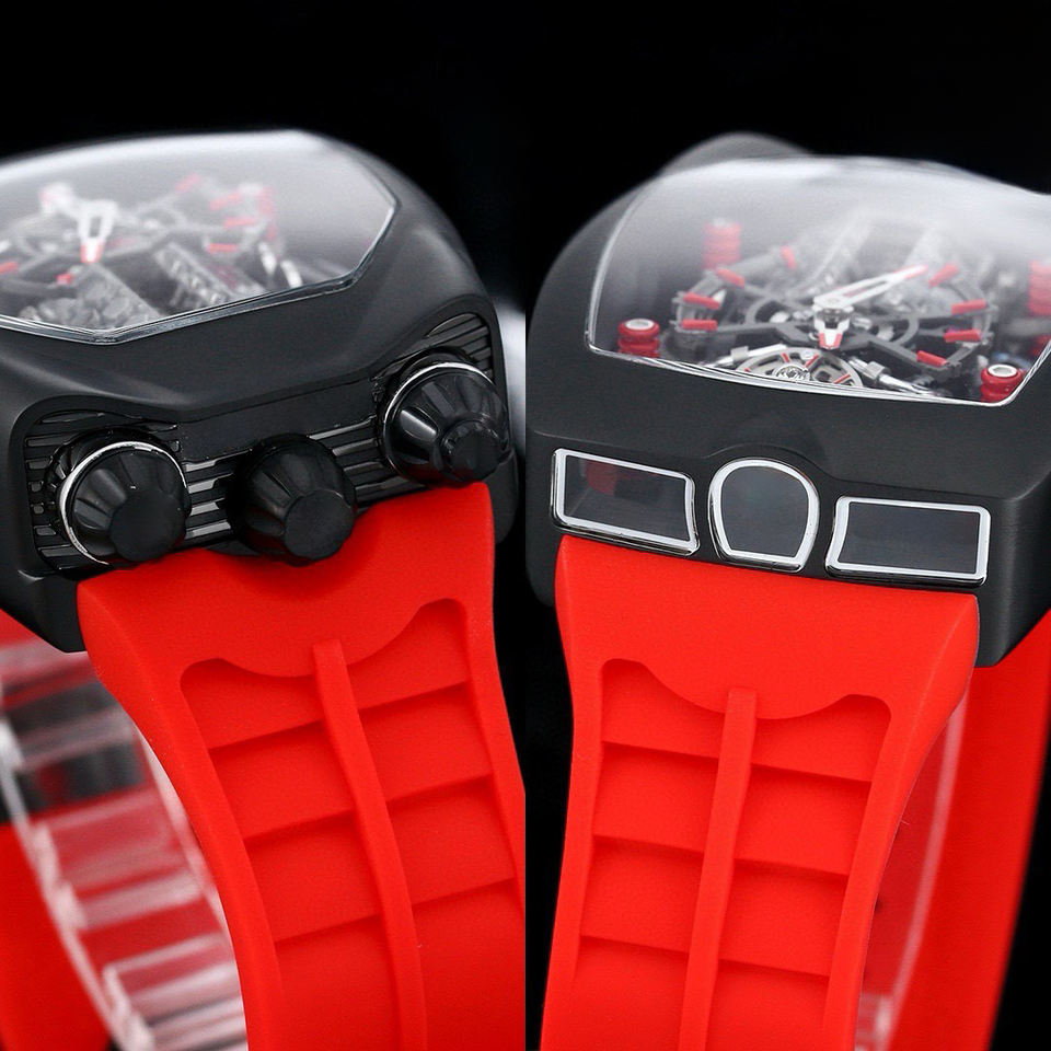 Montre de luxe pour homme au design sportif, personnalisée, avec cadran ajouré, mouvement tourbillon et bracelet rouge, montre-bracelet sportive et luxueuse