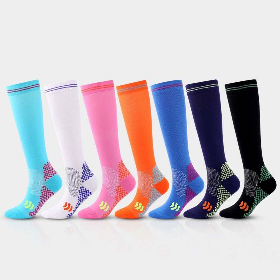 Chaussettes de compression sportives pour fitness, saut à la corde, marathon, course à pied, amincissantes, imprimées à la sérigraphie, tendance