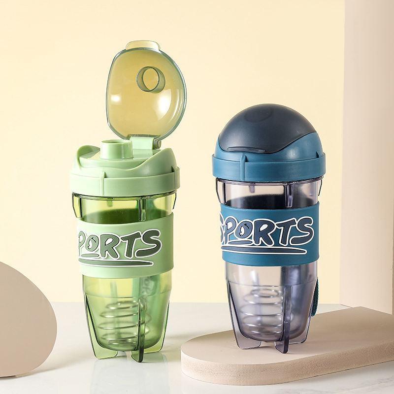 Bouteille d'eau sport écologique réutilisable 600 ml en plastique (PC+PP+Silicone) avec couvercle et corde, idéale pour la randonnée, le camping et les voyages – Vente directe