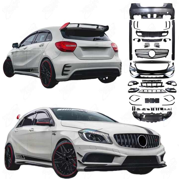 Édition sport pour Mercedes Benz a Class W176 2013-2018 Mise à niveau vers le kit de carrosserie de pare-chocs A45 AMG avec jupe latérale de calandre