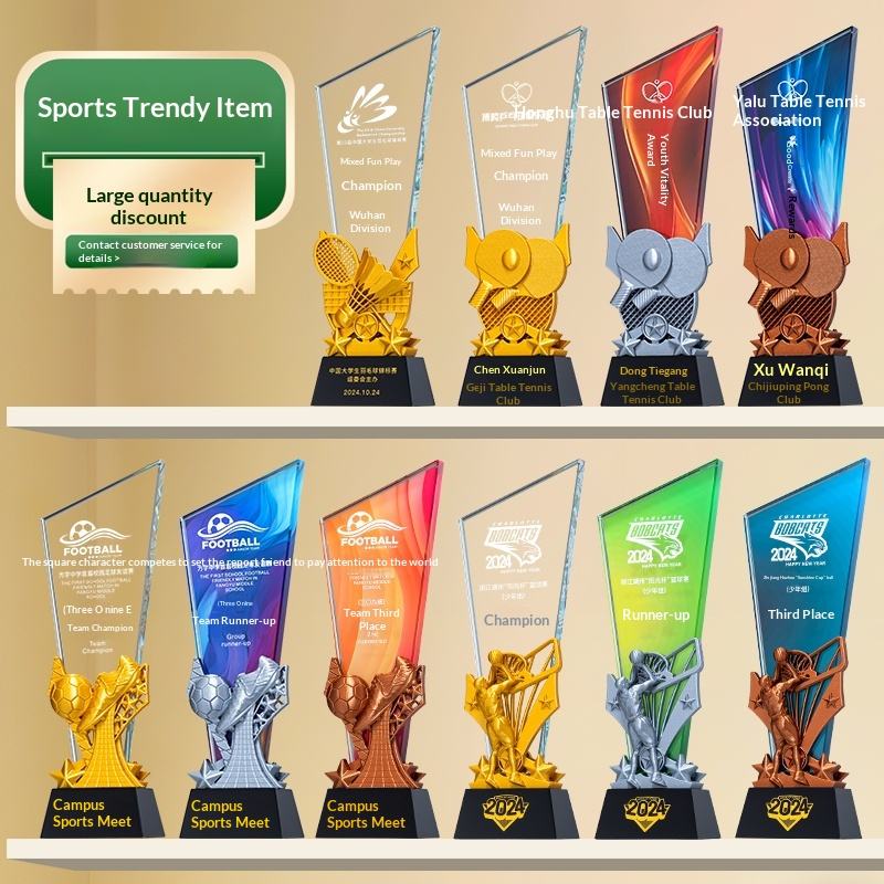 Trophée en cristal personnalisé pour compétition sportive : Badminton, Athlétisme, Basketball, Football, Tir à la corde – Récompense du champion