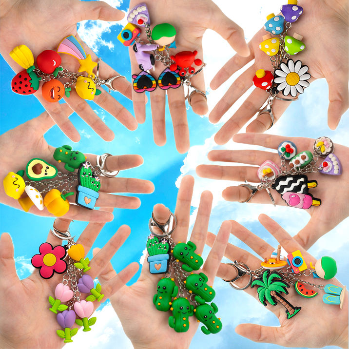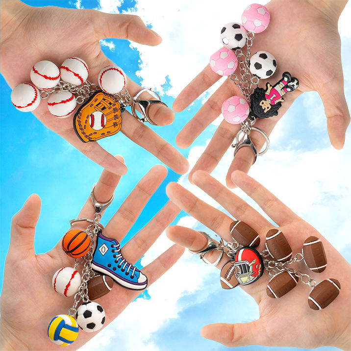 Porte-clés en caoutchouc à thème sportif, multi-breloques anime, breloques de baseball, de football et de basketball, porte-clés flexibles et imperméables pour un usage quotidien