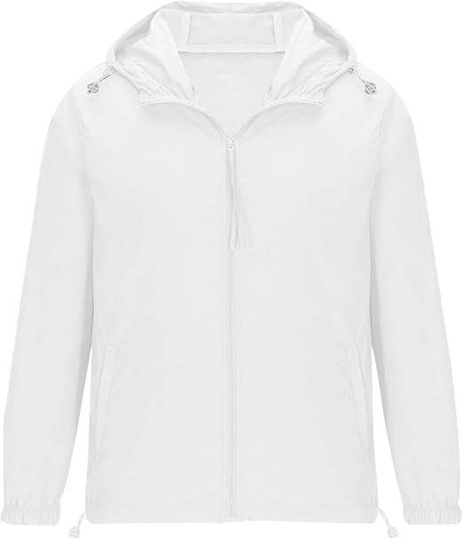 Veste coupe-vent de couleur blanche pour homme, imperméable à capuche pour l'extérieur, respirante, pour le voyage, le camping, l'anorak, la course à pied, la randonnée