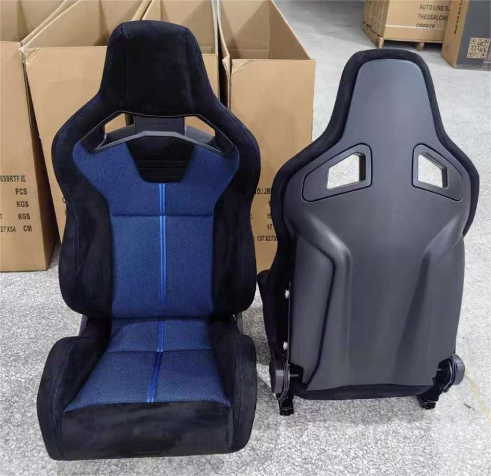 Sièges de course Sportster CS Bucket en cuir noir avec dossier en fibre de verre mat et suède, siège sport