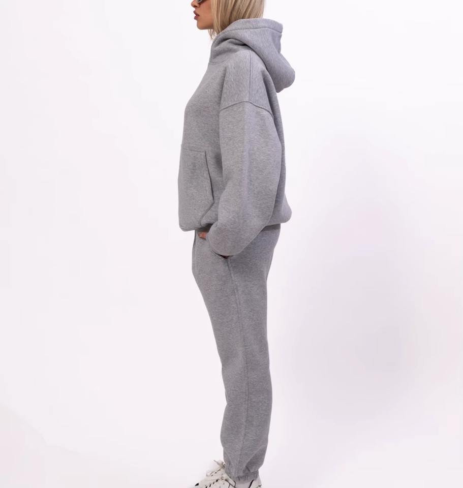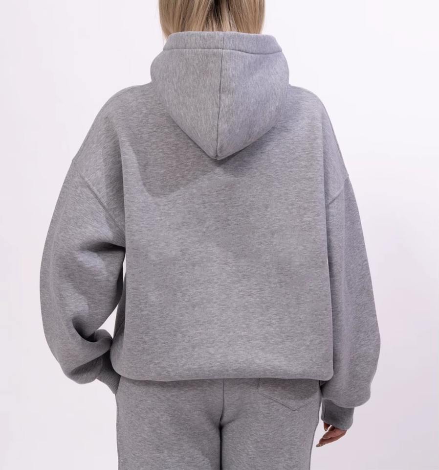 Sportswear Heavy Weight Red Velvet Drop Shoulder Oversized Pullover Full Zip Regular Embroidery Winter Knee Hoodie Tracksuit Set
