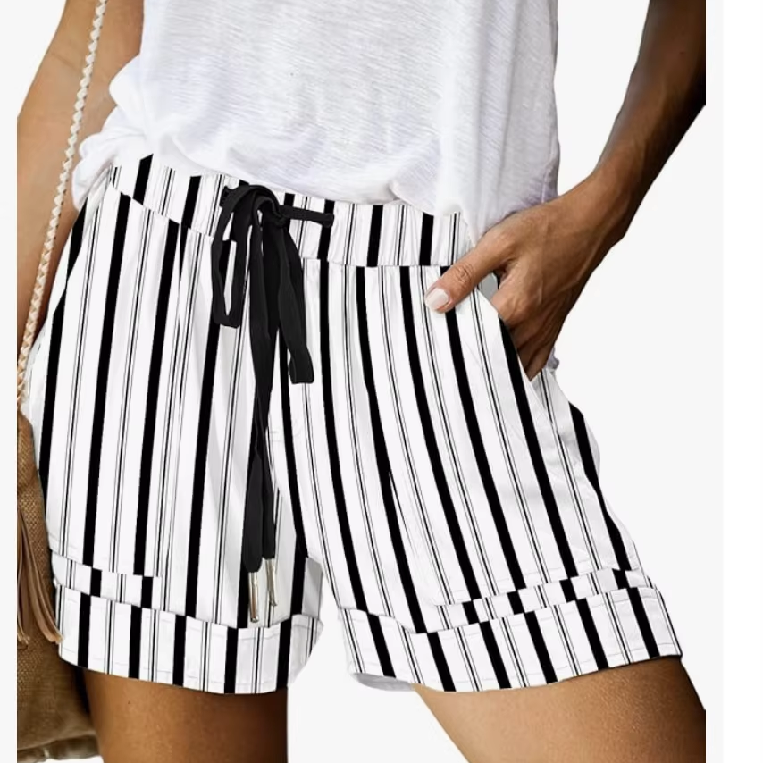 Sporty Women's Shorts Summer Cotton Bangladesh Comfy Elastic Waist Drawstring Casual Shorts with Pockets Lightweight Beach