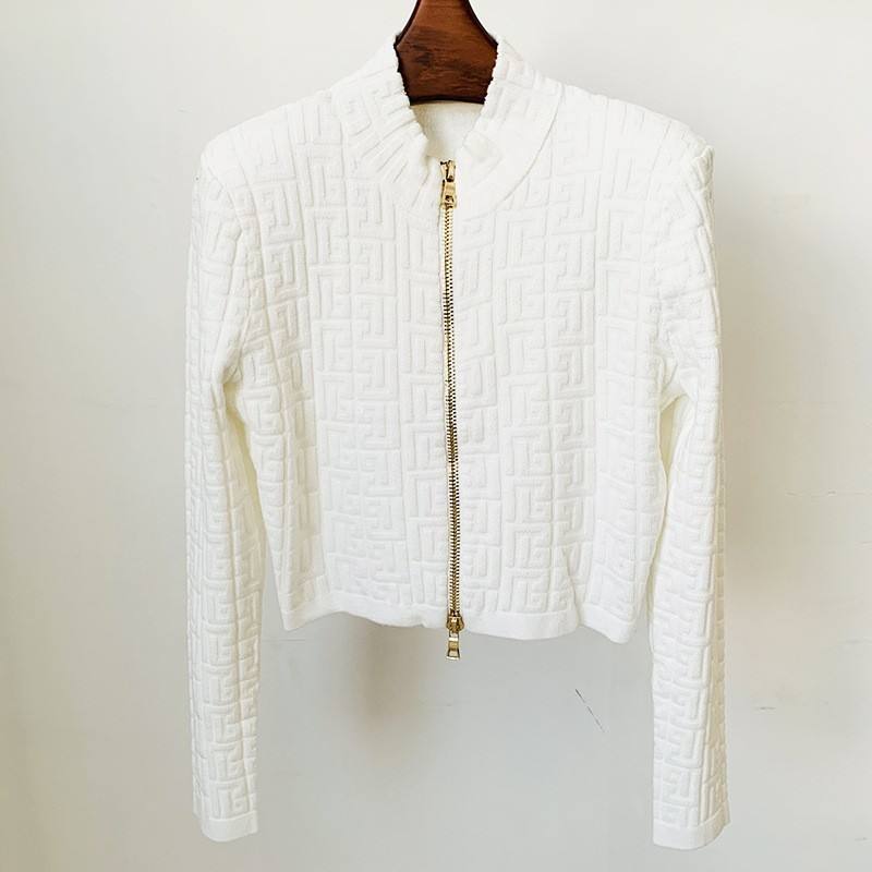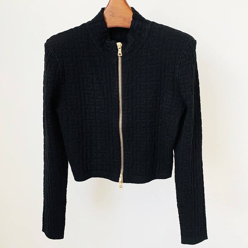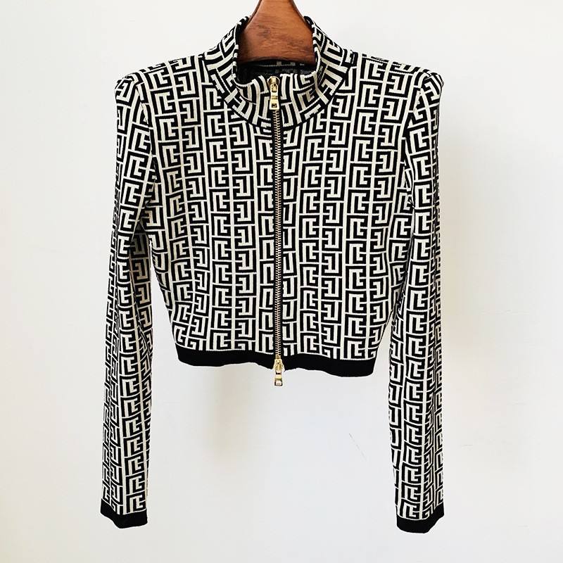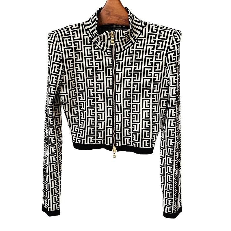 Spot 2025 Mode Nouveau Labyrinthe Motif Jacquard Col Montant Fermeture Éclair Courte Veste Femme