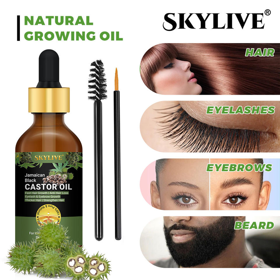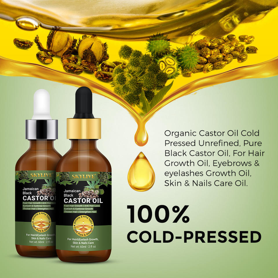 Huile de ricin 100% pure pressée à froid sans hexane, huile de ricin noire jamaïcaine biologique pour la croissance des cheveux et de la barbe