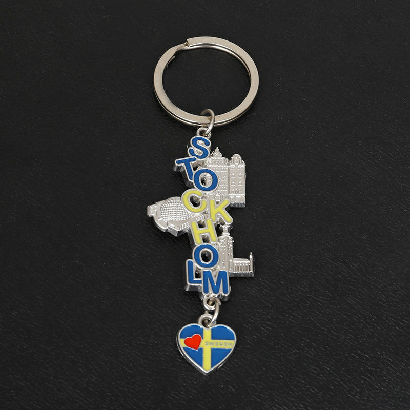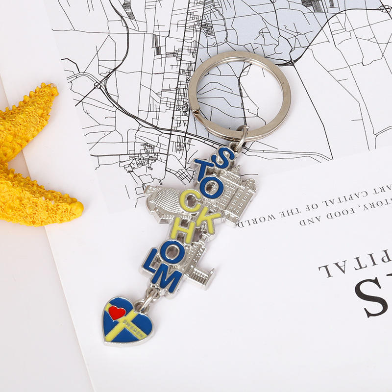 Porte-clés de Construction en métal suédois Spot personnalisé créatif et roman Souvenirs touristiques accessoires en alliage personnalisation