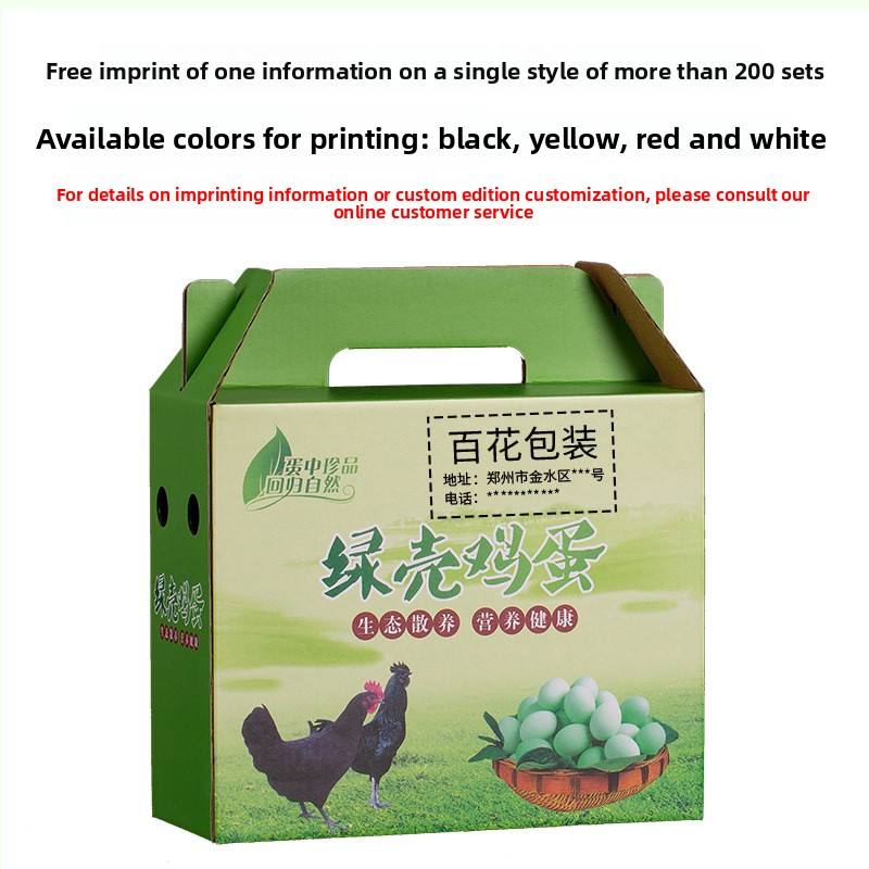 Boîte d'emballage locale pour œufs, 30, 60 ou 80 pièces, vide, en carton vert, personnalisable, pour œufs frais ou œufs de forage, avec poignée, idéale comme boîte cadeau.
