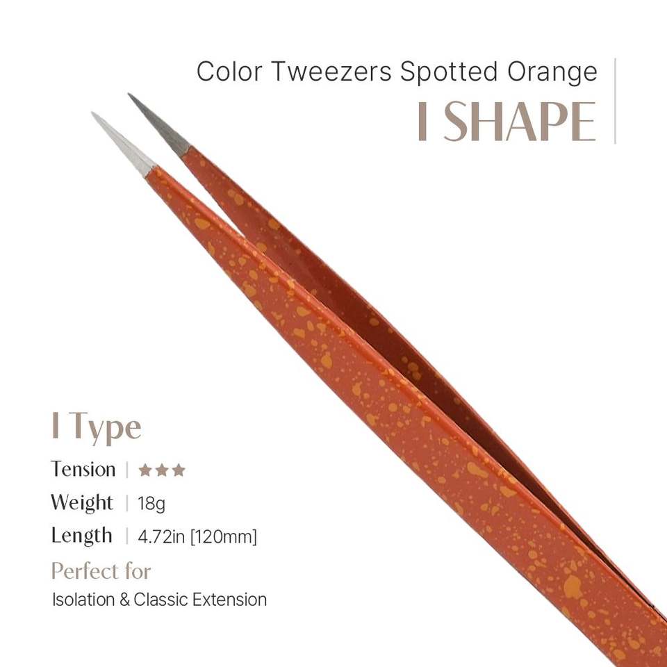 Pince à épiler orange (forme en I) pour extensions de cils, en acier inoxydable avec pointes précises et pointes en fibre