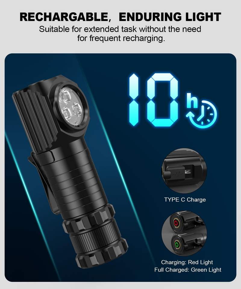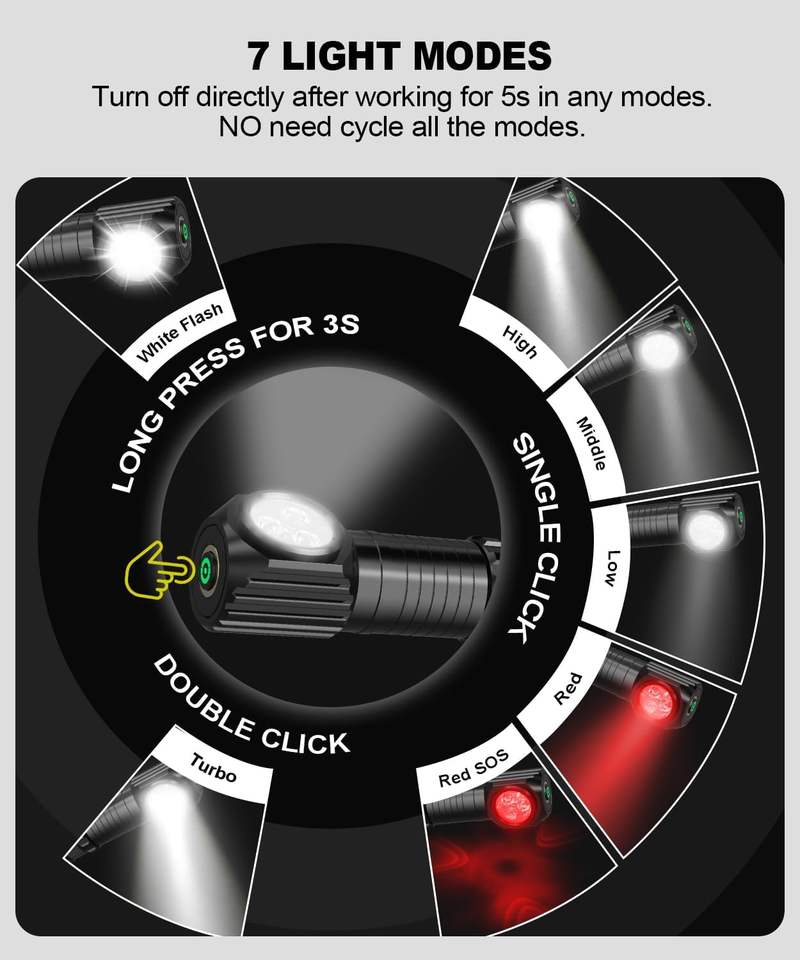 Spriak Lampe frontale LED rechargeable Lumière rouge Inclinaison à 180 ° 7 modes Lampe de poche détachable Bandeau pour adultes Casque lumineux Extérieur