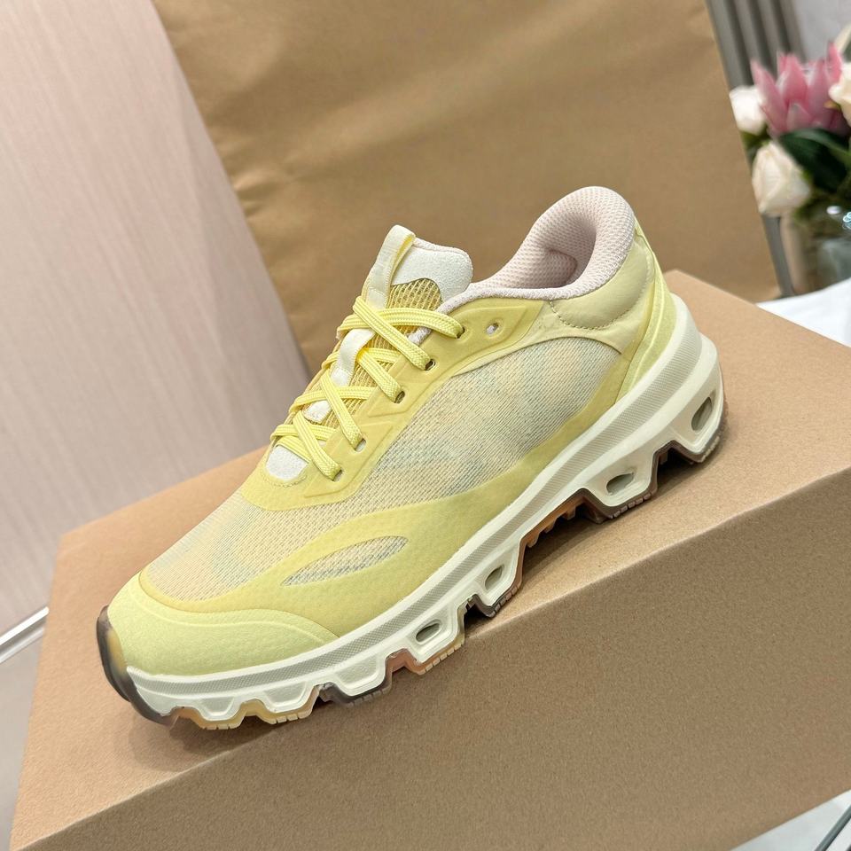 Chaussures de marche à lacets printemps-automne, amortissantes et antidérapantes, chaussures de créateur respirantes, doublées de maille jaune, à semelle épaisse