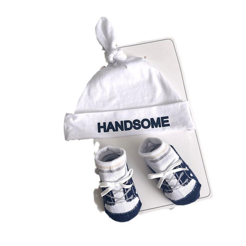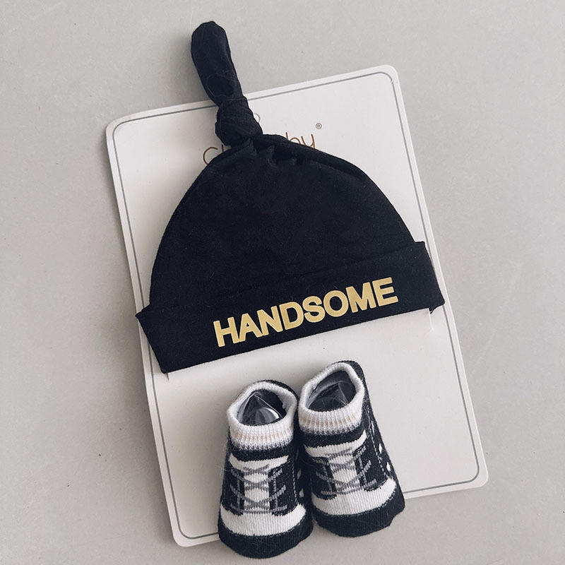 Ensemble bonnet et chaussettes pour bébé garçon printemps-automne en coton coupe-vent avec motif lettres pour nouveau-né jusqu'à 12 mois
