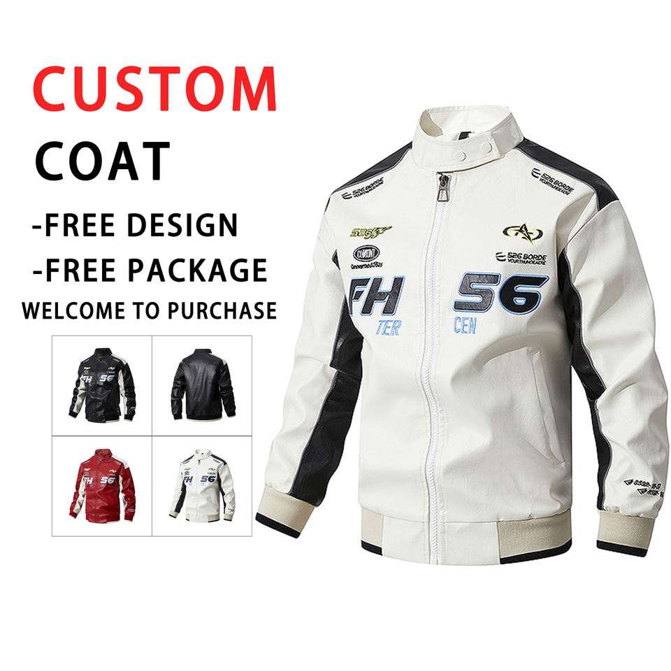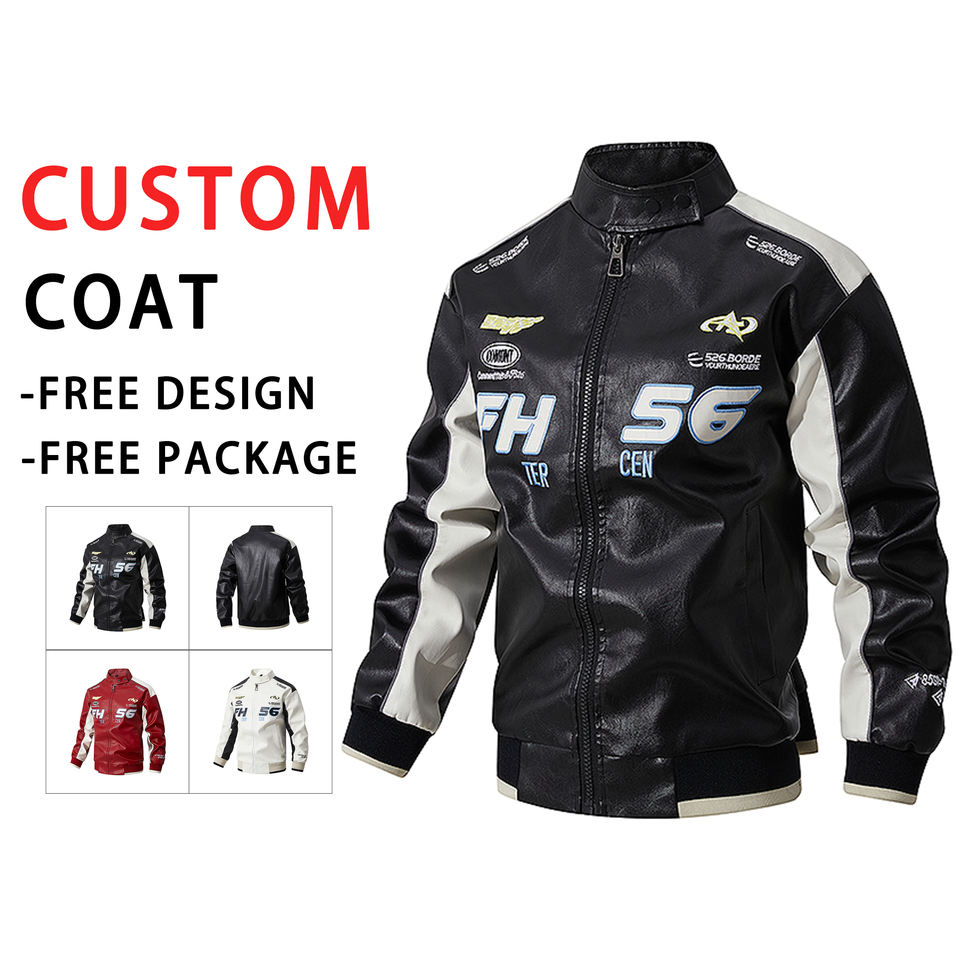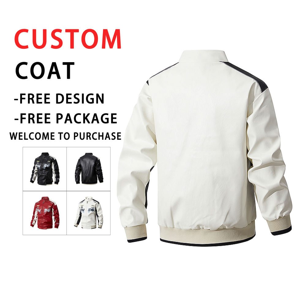 Printemps Automne Vente en gros de veste de moto personnalisée en cuir artificiel Nouvelle tendance Vêtements de sport coupe-vent à col montant pour hommes