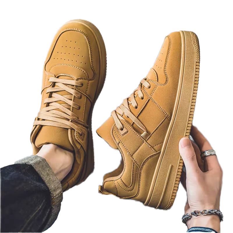 Chaussures de sport décontractées pour hommes, légères, pour la course et la marche, printemps-automne, dessus en cuir, semelle en caoutchouc, lacets