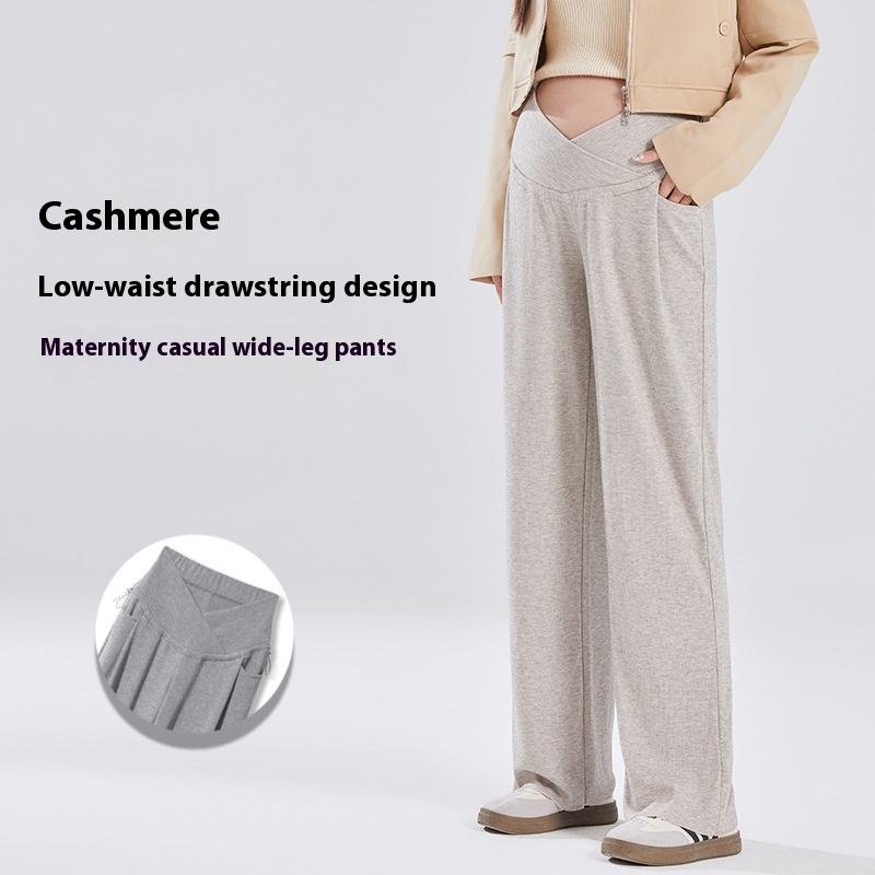 Printemps Automne Vêtements d'extérieur de maternité amincissants Pantalon doux à taille croisée avec cordon de serrage Conception à jambes larges pour les femmes enceintes