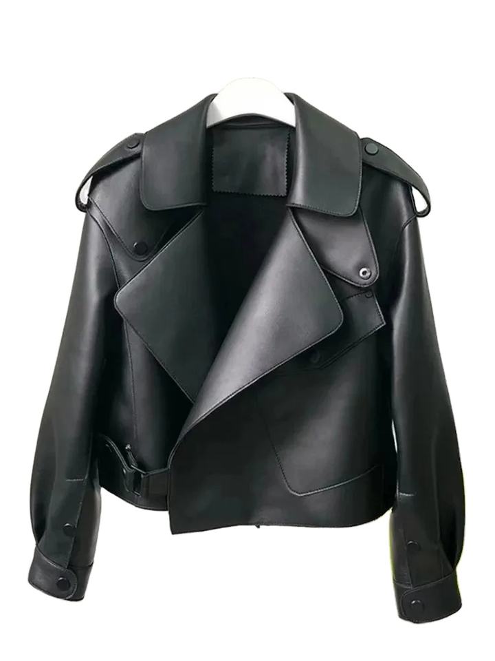 Veste en cuir PU pour femme printemps automne Manteau en cuir de moto coupe-vent décontracté pour femme