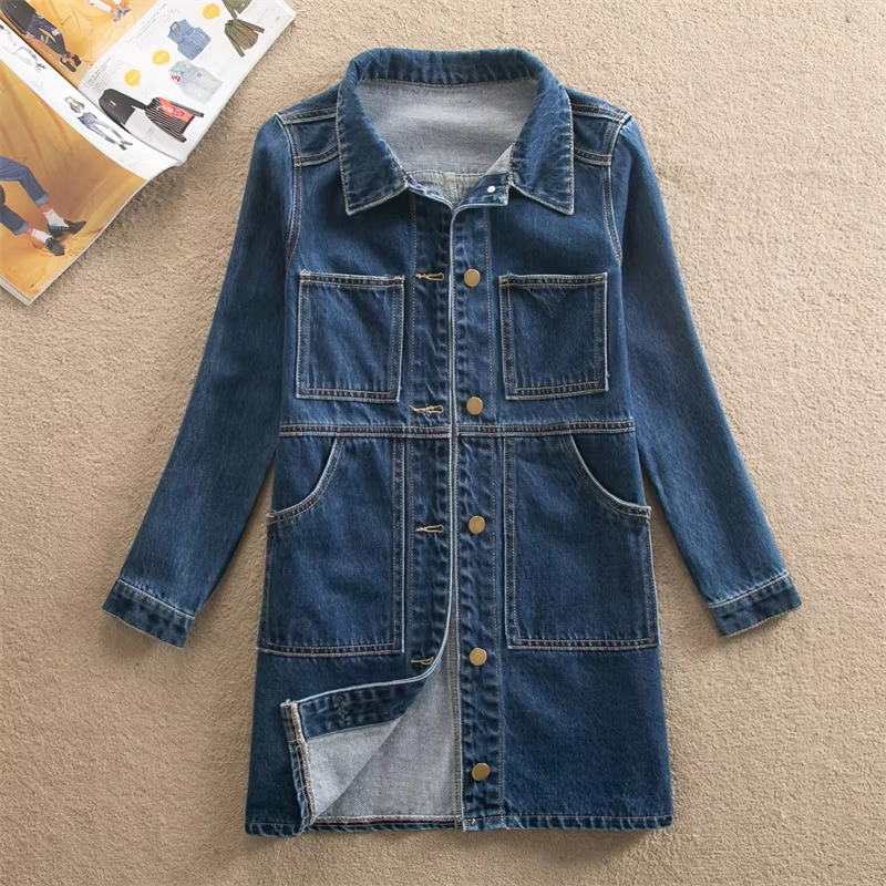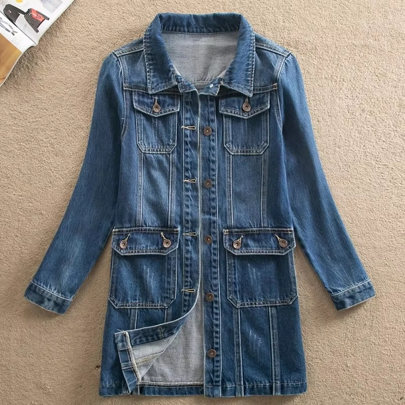Veste en jean à manches longues pour femme, manteau coupe-vent multi-poches grande taille 6XL, printemps-automne