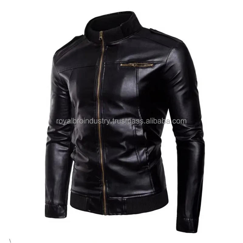 Printemps automne hommes veste en cuir PU veste mode Slim Fit col montant motos vêtements d'extérieur Moto Biker veste en cuir pour hommes