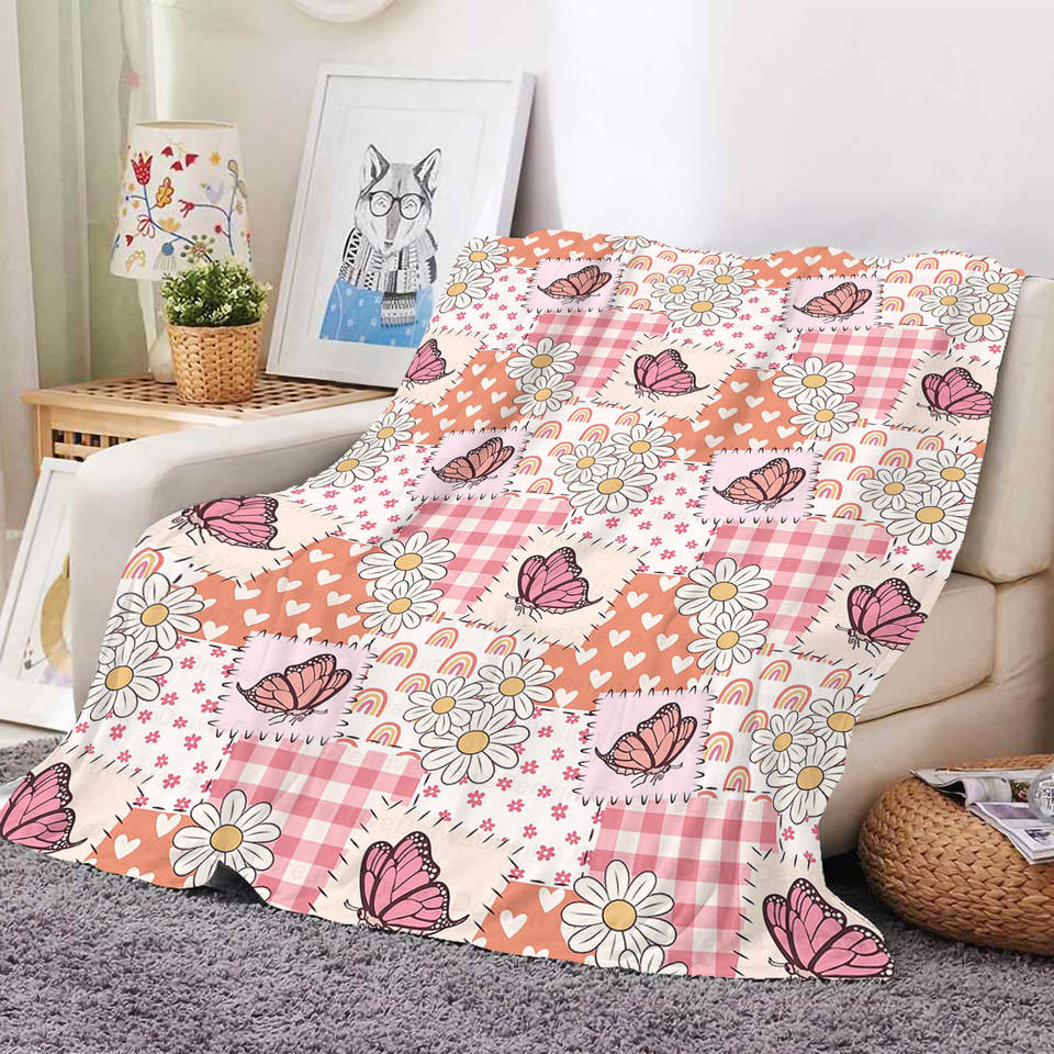 Couverture en polaire et flanelle à motifs papillons printaniers, idéale pour la décoration de chambre, les siestes d'étudiants et les voyages en voiture