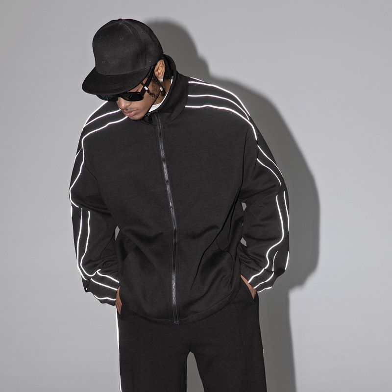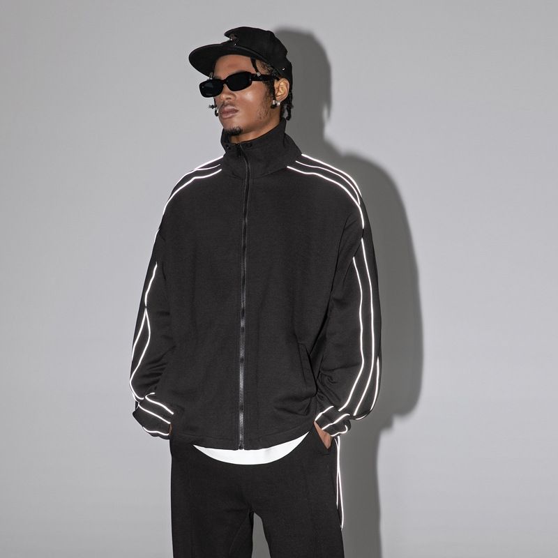 Costume décontracté pour homme en satin tissé respirant avec logo personnalisé, coupe ample et fermeture éclair