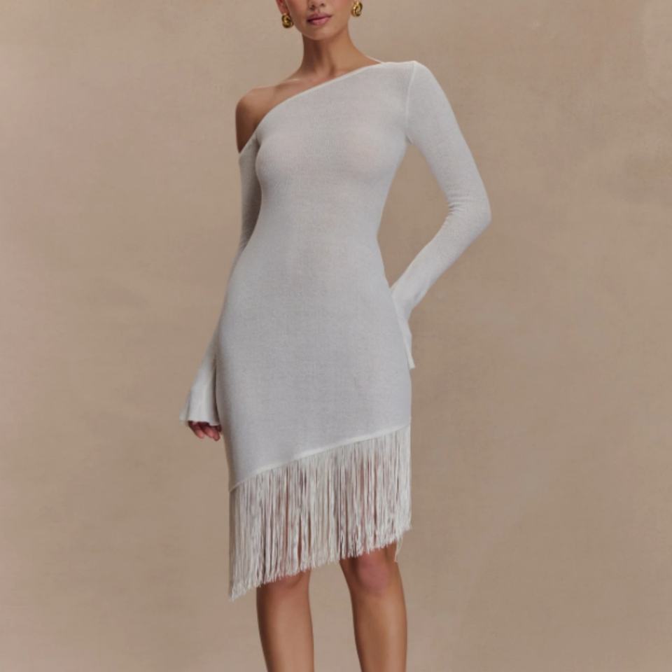 Collection Printemps – Nouvelle Robe Décontractée Femme Personnalisée, Mini-Robe Sexy en Coton à Épaule Unique, Robe Décontractée Extensible de Haute Qualité avec Ourlet à Franges