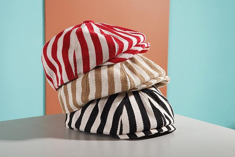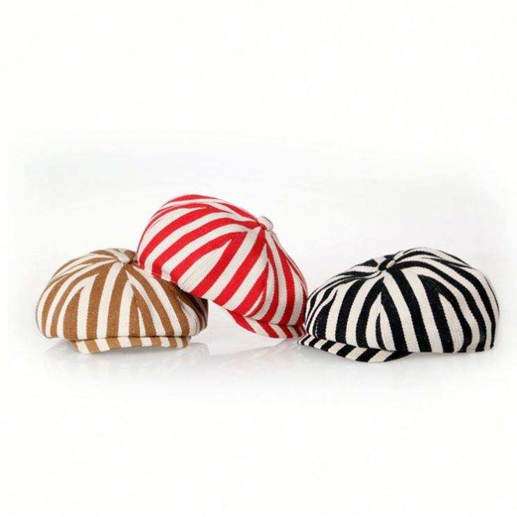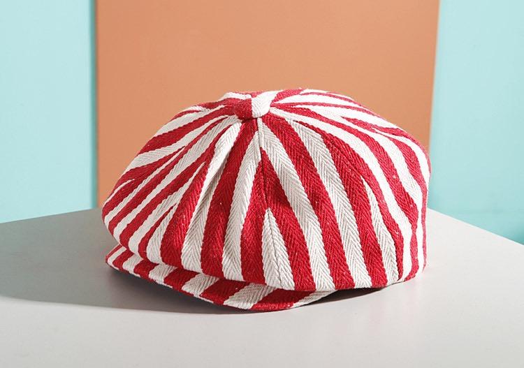 Casquette Gavroche Rétro Western à Rayures Épaisses Printemps Automne, Chapeau Béret Simple pour Jeunes Filles et Garçons