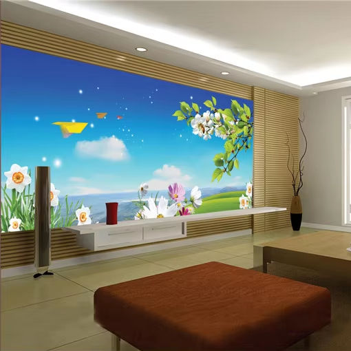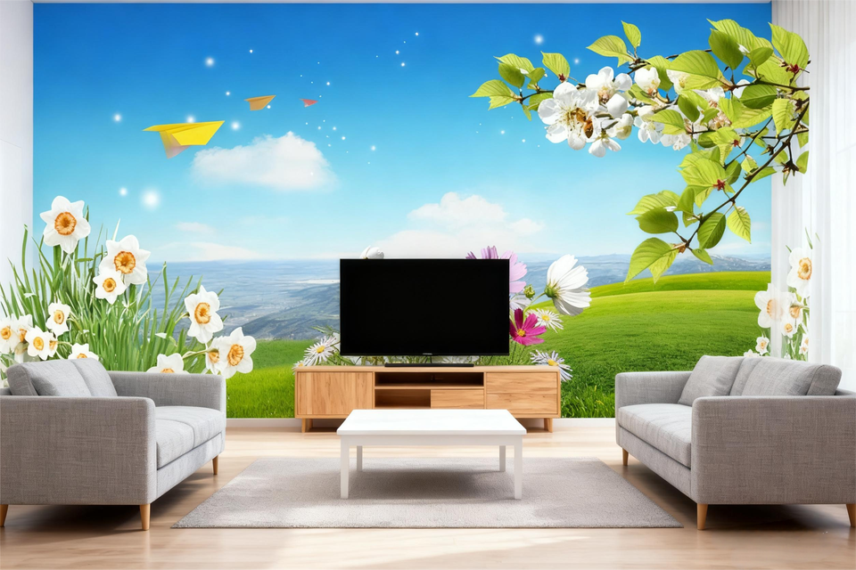 Papier peint moderne imperméable à l'eau avec motif de prairie florale printanière, facile à installer, pour la décoration des restaurants et des bureaux